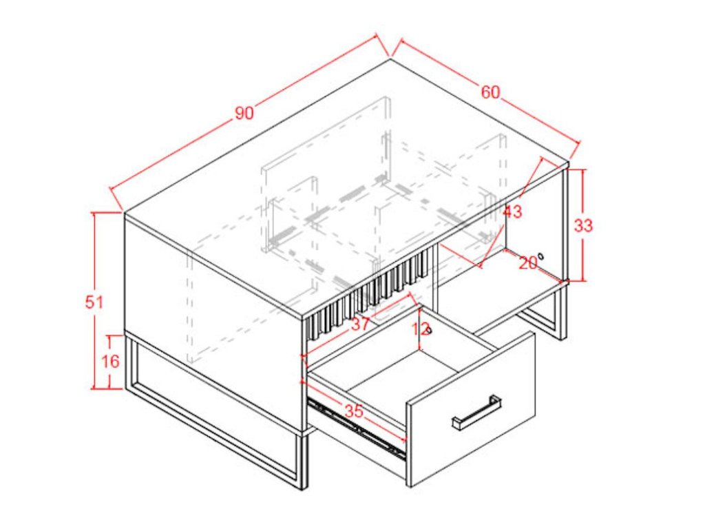 Rozměry: šířka 90 cm, hloubka 60 cm, výška 52 cm