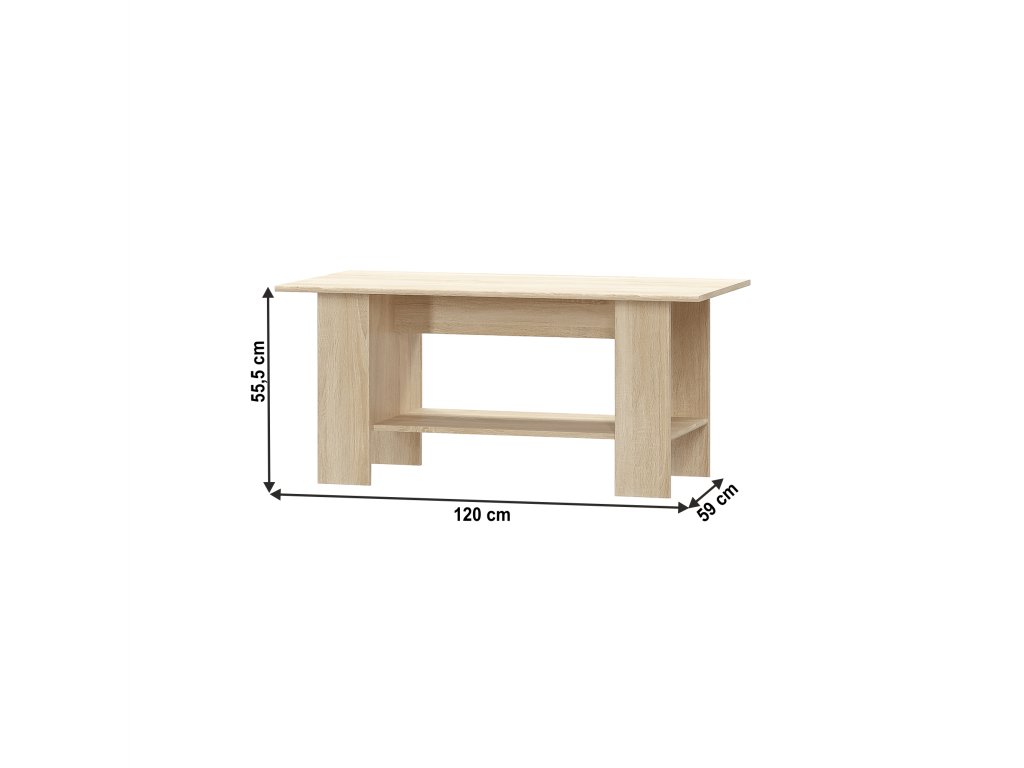 Vyroben z laminované DTD s tloušťkou 16 mm, stolek je nejen odolný, ale také snadno udržovatelný. Jeho rozměry 120 × 59 × 55,5 cm poskytují dostatek prostoru pro odkládání nápojů, časopisů či dekorací, aniž by zabíral příliš místa. Díky jemnému dekoru dub sonoma navíc vnese do vašeho domova příjemnou a teplou atmosféru.