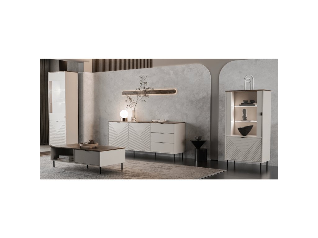 Objevte ideální spojení moderního designu a funkčnosti s konferenčním stolkem SAIDY v elegantním dekoru kašmír/dub castello. Stolek nabízí prostorné úložné možnosti a zároveň se stane výrazným doplňkem vašeho interiéru.