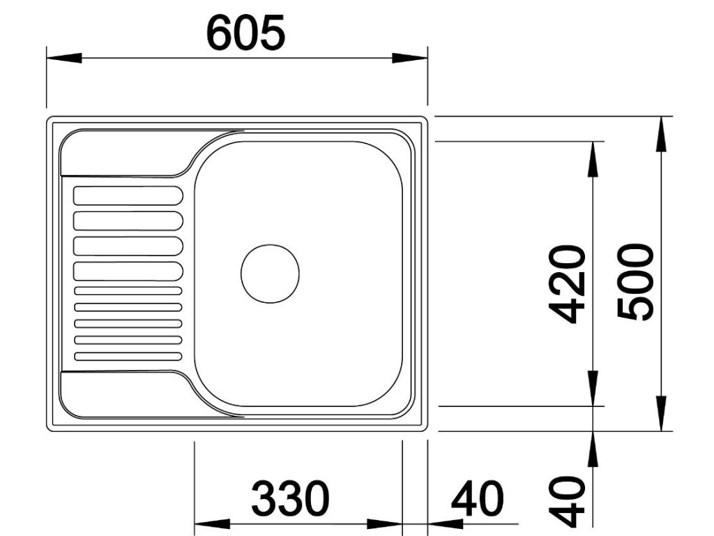 Rozměry dřezu: 605 x 500 mm