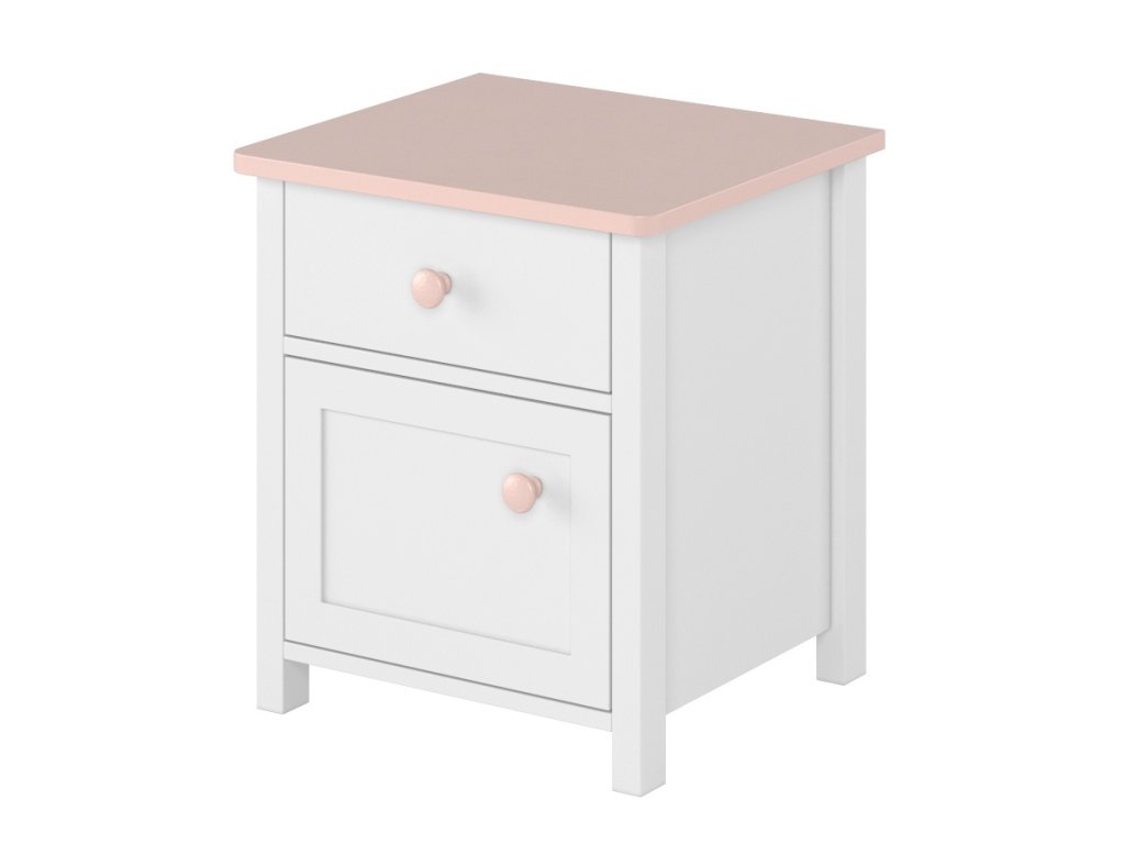 Noční stolek PIXIE 07 je elegantním a praktickým doplňkem do dětského pokojíčku malé princezny i větší slečny. Vyroben je z desky LTD v klasické bílé barvě s jemnými růžovými doplňky, které dodávají prostoru hravý a romantický vzhled.