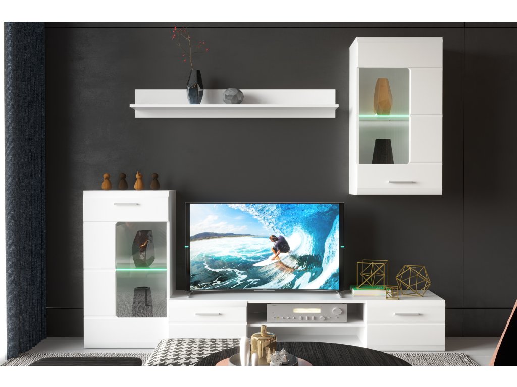 Obývací stěna PERING v provedení bílá s kombinací bílé lesk o šíři 230 cm.