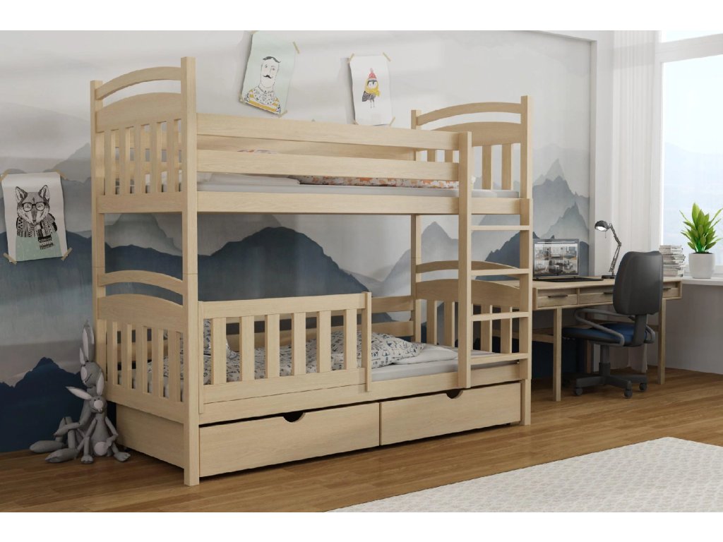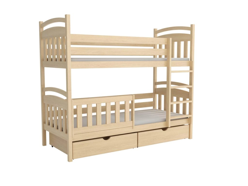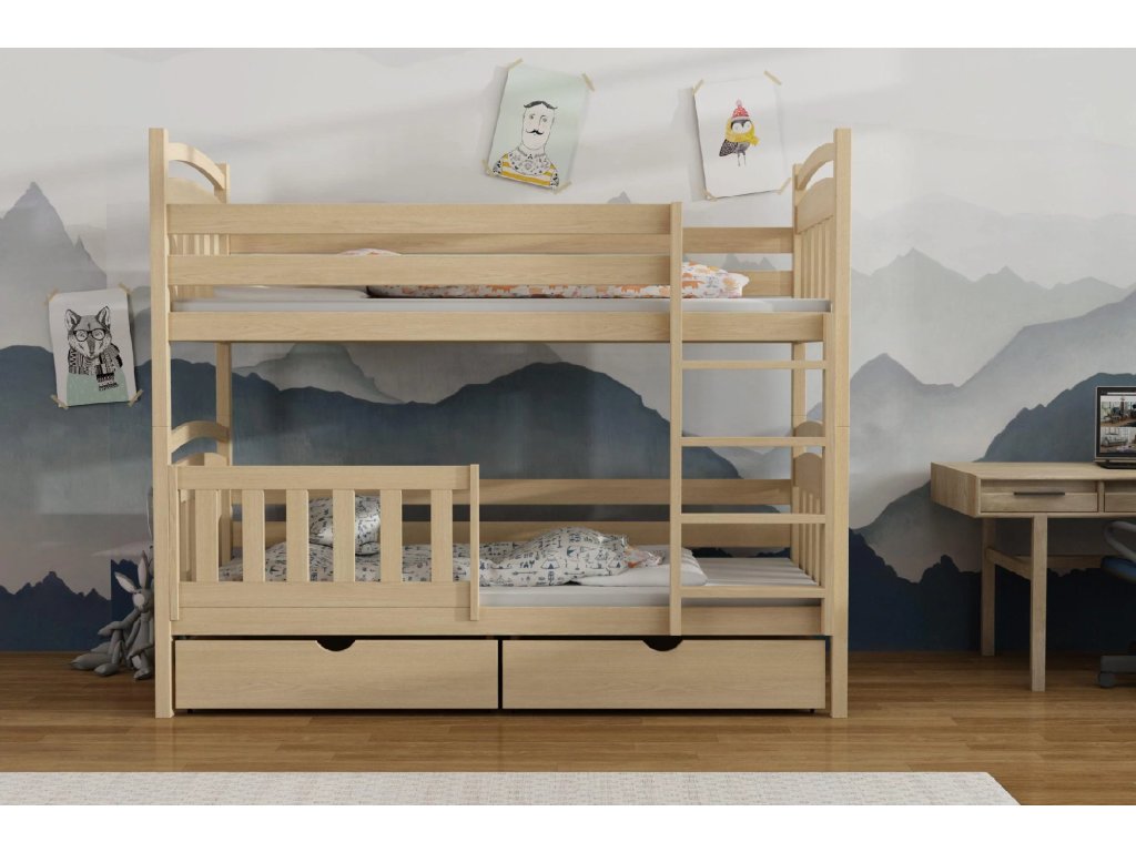 Patrová postel GIAN se zábranou je ideálním řešením do dětských pokojů, kde je potřeba šetřit místem bez kompromisů na pohodlí a bezpečnosti. Masivní borovicové dřevo, pevný rošt a možnost zásuvek zajišťují dlouhou životnost i praktičnost.