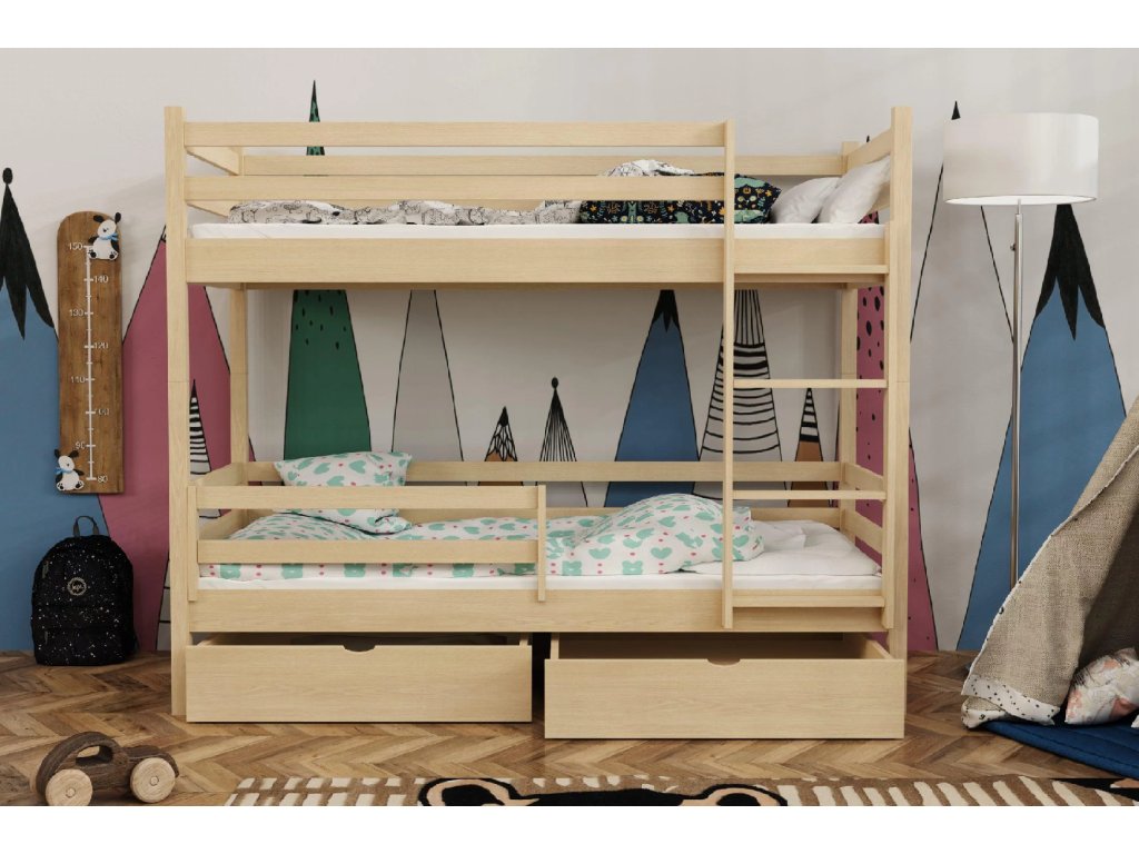 Postel je vyrobena ze 100% masivního borovicového dřeva, které se vyznačuje vysokou pevností, stabilitou a dlouhou životností. Precizní zpracování a zaoblené hrany zajišťují maximální bezpečnost, díky čemuž je postel vhodná i pro menší děti.