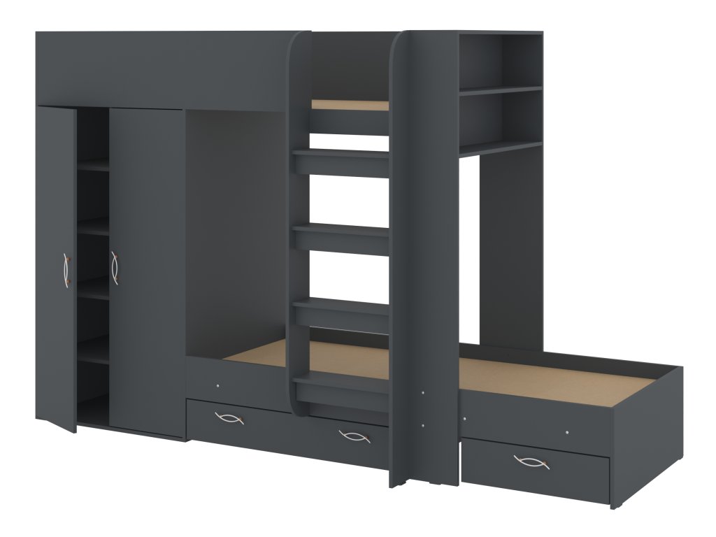 Patrová postel NEMO, 80 x 190 cm, se šatní skříní a zásuvkami | ANTRACIT