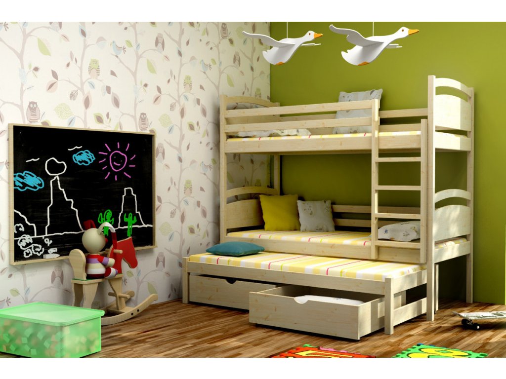 Patrová postel s přistýlkou ALAIN PINE 80x180 vč. roštů + ŠUPLÍKY