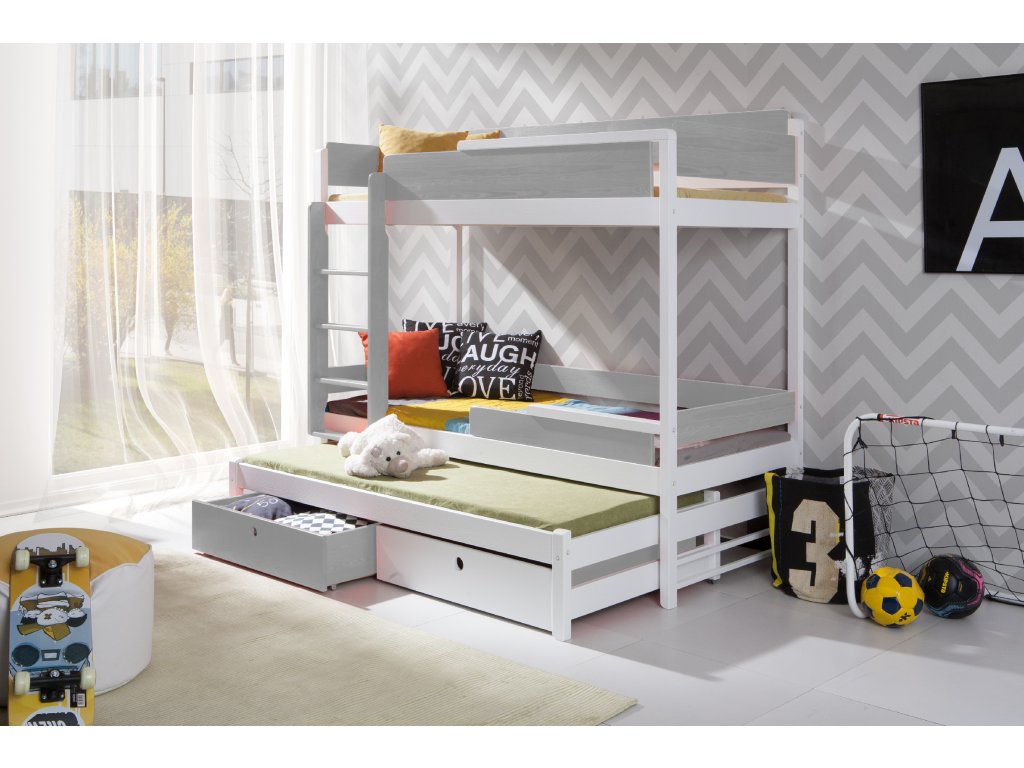Patrová postel s přistýlkou MARCOS 80x180 + ROŠTY a ZÁSUVKY v ceně