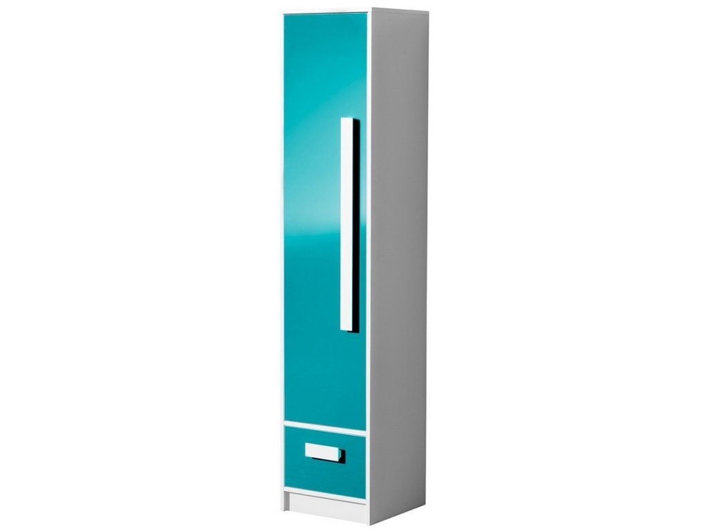 Policová šatní skříň MALIA 4 do dětského pokoje - bílá / tyrkys lesk