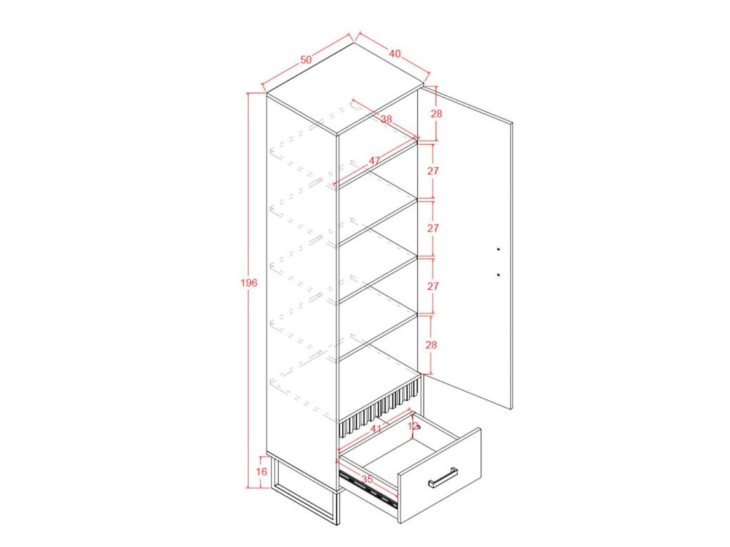 Ideální rozměry pro každý prostor – šířka 50 cm, výška 196 cm, hloubka 40 cm.