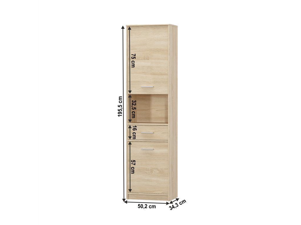 Prostorově efektivní: výška 195 cm, šířka 50 cm a hloubka 34 cm umožňuje maximální využití prostoru.