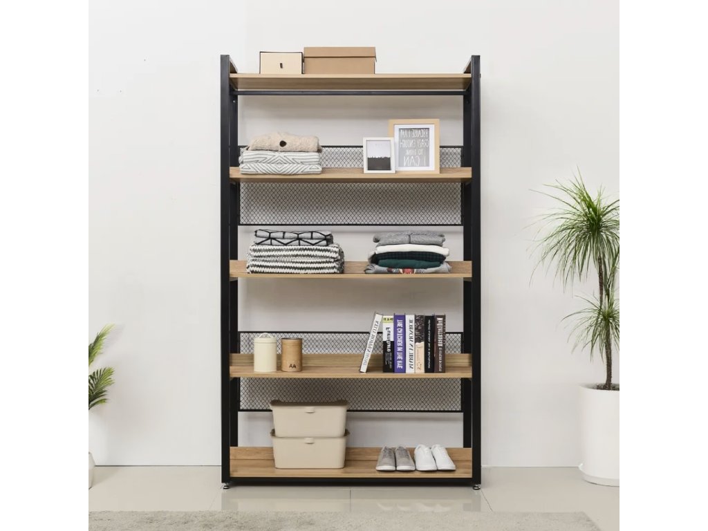Policový regál ALISON NEW TYP 3 v moderní kombinaci dubu a černé oceli nabízí praktické a elegantní řešení pro přehledné uspořádání každého interiéru. Spojení odolné ocelové konstrukce a DTD foliovaných polic zaručuje stabilitu, dlouhou životnost a atraktivní vzhled, který se hodí do obývacího pokoje, pracovny, kuchyně i kanceláře. Díky rozměrům 120×40×200 cm poskytuje dostatek prostoru pro knihy, dekorace, rostliny nebo úložné boxy.