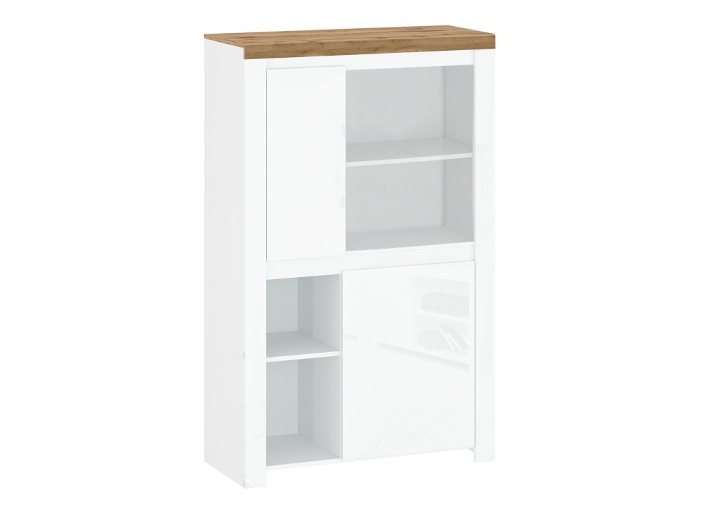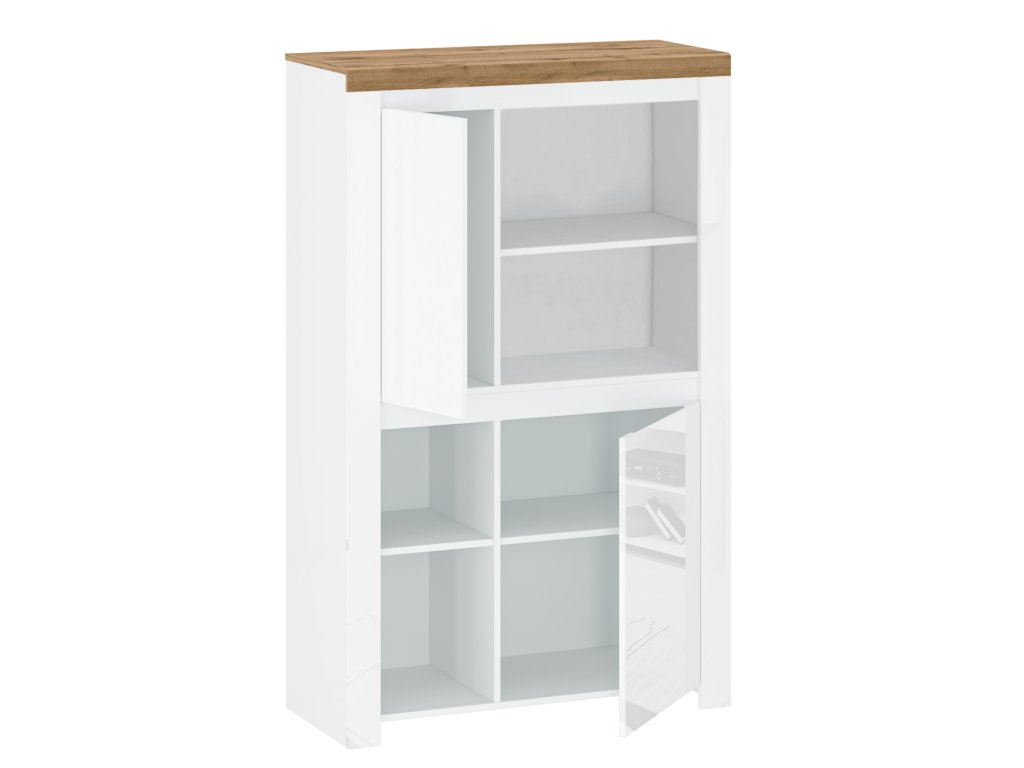 Policový regál JANKO 2D bílý lesk / dub wotan