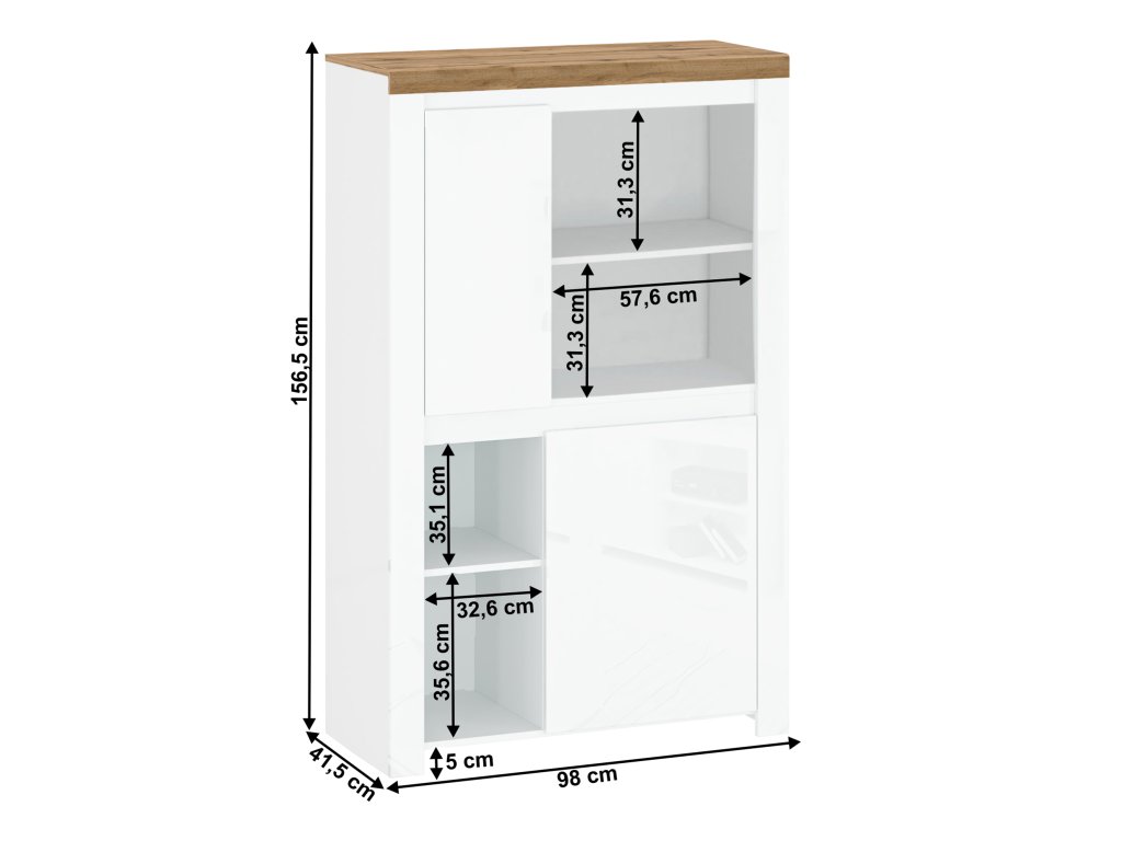 Vytvořte si moderní a praktický úložný prostor s policovým regálem JANKO 2D v elegantním designu bílé extra vysokého lesku kombinované s dekorem dub wotan. Tento regál je ideální do obývacího pokoje, pracovny nebo ložnice, kde spojuje funkčnost s nadčasovým stylem.