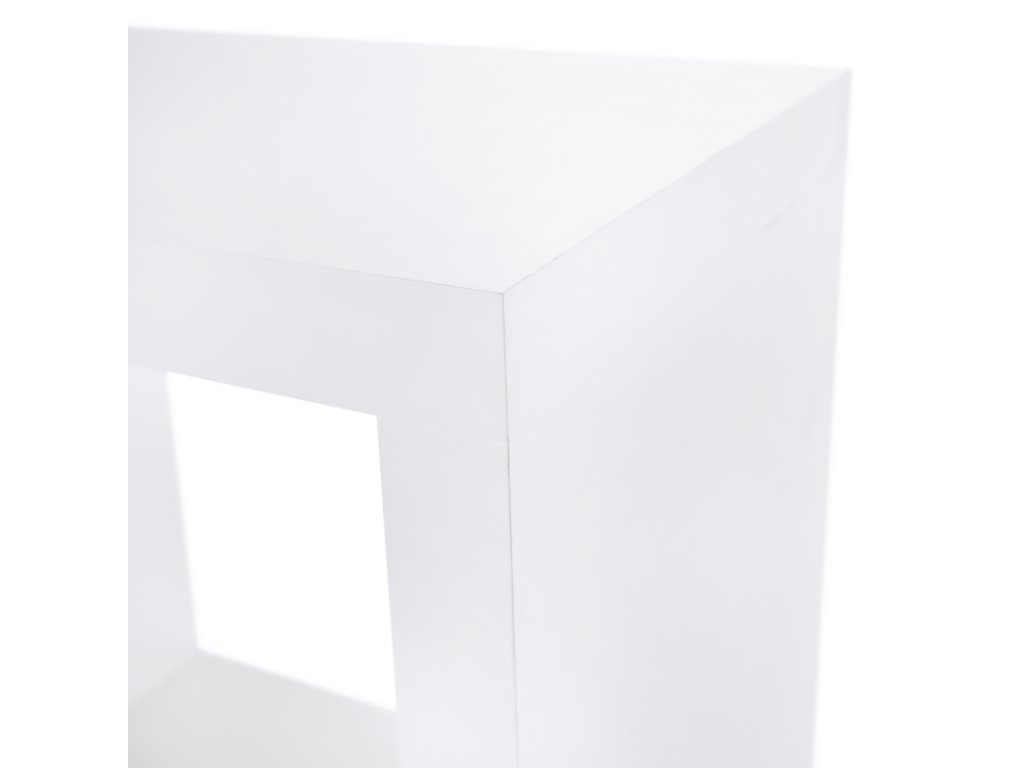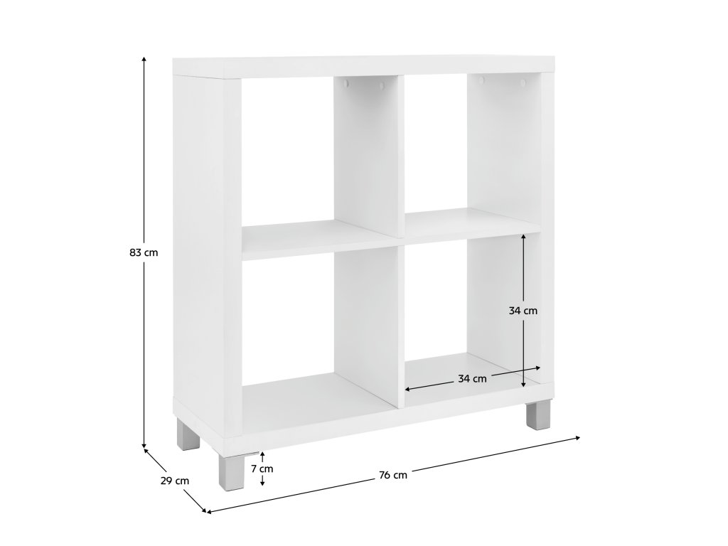 Korpus má tloušťku až 35 mm, což zajišťuje pevnost a stabilitu konstrukce. Díky své univerzální bílé barvě se regál snadno kombinuje s různými interiéry a dalšími prvky systému LORIJN NEW. Šířka regálu je 76 cm, hloubka 29 cm a výška 83 cm. Nosnost polic je přibližně 15 až 20 kg.