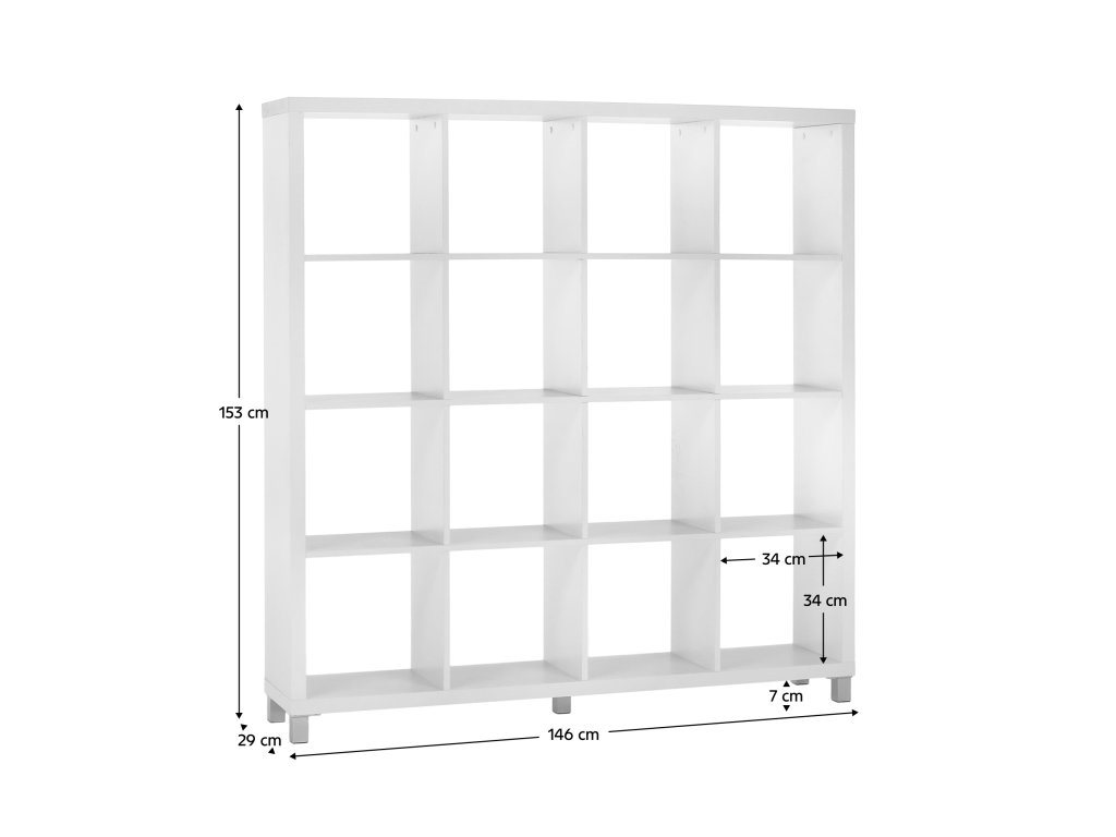 Regál v bílé barvě nabízí i možnost volby barevných dvířek: bílá, černá, dub sonoma, žlutá nebo zelená, takže snadno sladíte nábytek s interiérem. S rozměry 146×29×153 cm a robustním korpusem až 35 mm z kvalitní laminované DTD poskytuje stabilitu a dlouhou životnost.