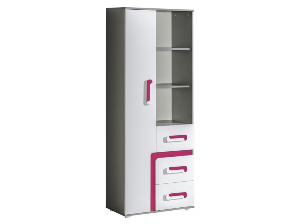 Policový regál SOLETTA 4 přináší do dětského i studentského pokoje moderní vzhled a praktické úložné prostory. Kombinace antracitového korpusu a růžových dvířek působí svěže, originálně a dodá interiéru příjemnou atmosféru. Regál se hodí jak do pokojíčku menších dětí, tak do studentského pokoje.
