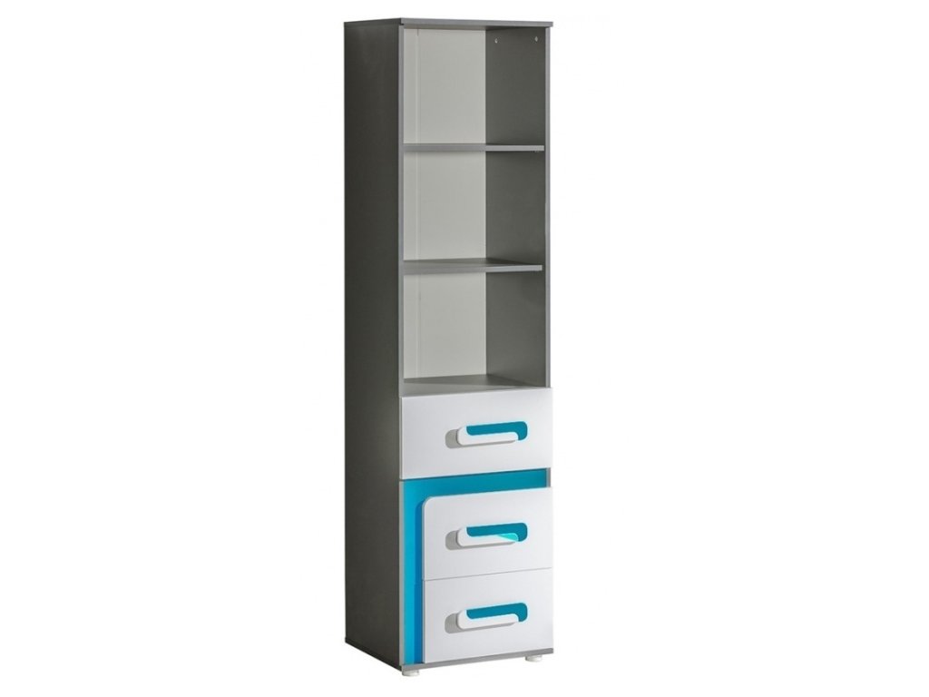 Hledáte praktický a stylový nábytek do dětského pokoje, který potěší jak děti, tak rodiče? Policový regál – knihovna SOLETTA 5 z kolekce SOLETTA je ideální volbou! Moderní design v kombinaci antracitového korpusu a tyrkysových dvířek dodá pokojíčku svěží a hravý vzhled.