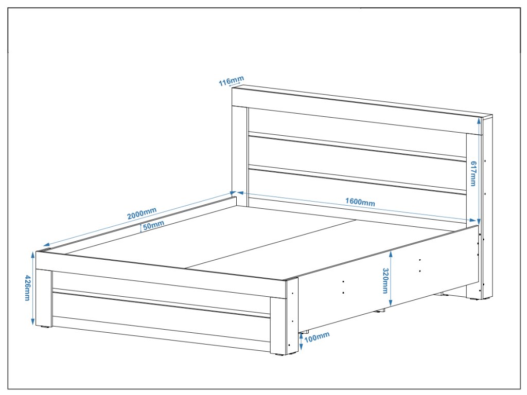 - Matrace na míru: Matraci si můžete vybrat dle vlastních preferencí, čímž si zajistíte maximální komfort během spánku. Postel je kompatibilní s matrací o rozměrech 160x200 cm / 2x 80x200 cm (matrace není součástí balení).