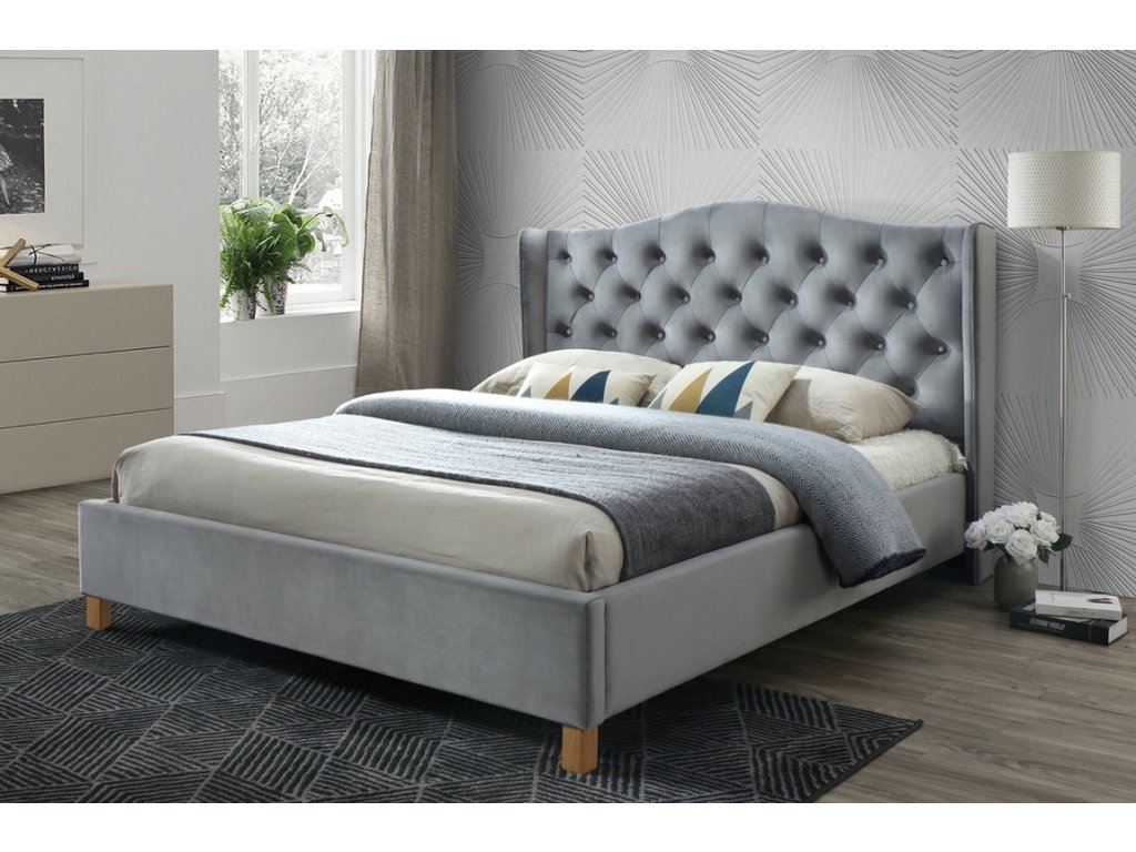 Čalouněná postel originálního vzhledu s krásným prošíváním bude jako královská lóže pro ty, co si potrpí na styl a eleganci. Konstrukce je potažena látkou aksamit šedé barvy, nožky jsou ze dřeva v barvě dub vysoké 10 cm. Rošt je součástí postele ( klasický lamelový rošt v plastových pouzdrech ). Matraci nutno doobjednat o rozměrech 180 x 200 cm nebo 2 ks 90 x 200 cm. Dodáváme v demontovaném stavu.