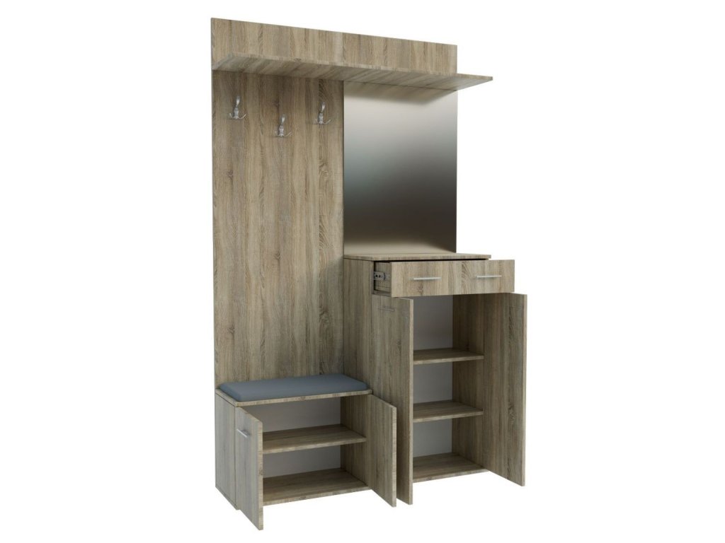 Předsíňová stěna ARMANDI II v dekoru dub sonoma je nadčasové a praktické řešení pro moderní i klasicky laděné interiéry. Světlý odstín dřeva působí příjemně, opticky zvětšuje prostor a snadno se kombinuje s dalšími barvami i materiály. Stěna nabízí ideální spojení estetiky a funkčnosti a poskytuje dostatek místa pro odkládání oblečení, obuvi i doplňků.