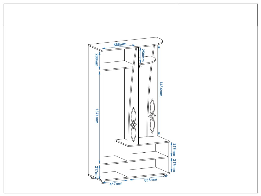 - Optické zvětšení prostoru: Zrcadlo na přední straně poskytuje praktickou funkcionalitu i estetický prvek pro každou předsíň.
