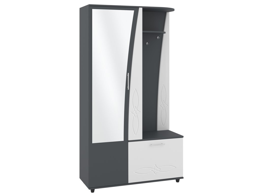 - Vysoká funkčnost: Kombinuje zrcadlo, šatní skříň, výsuvný šatník a botník v jednom kuse nábytku.