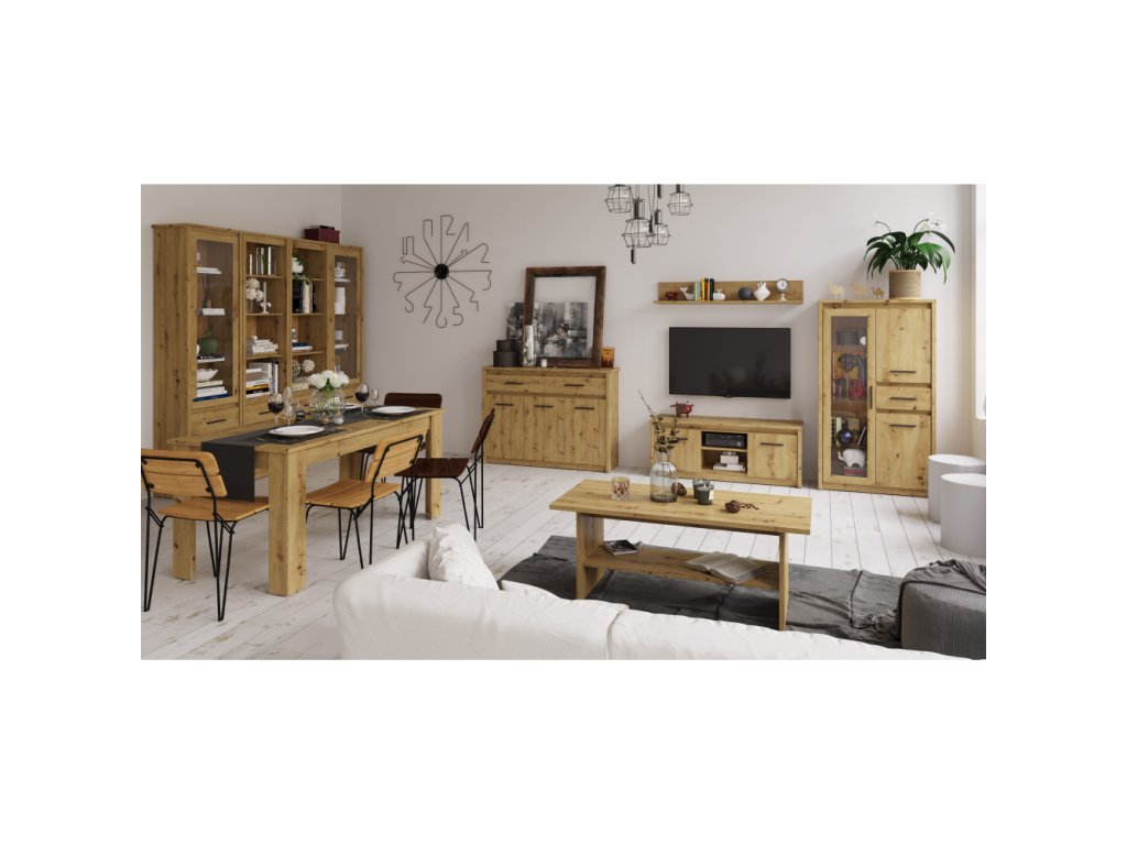 Elegantní prosklená vitrína LITZY v dekoru dub artisan nabízí kombinaci stylu a praktického úložného prostoru. Je ideální pro obývací pokoj, jídelnu nebo pracovnu, kde chcete vystavit dekorace, knihy či suvenýry.