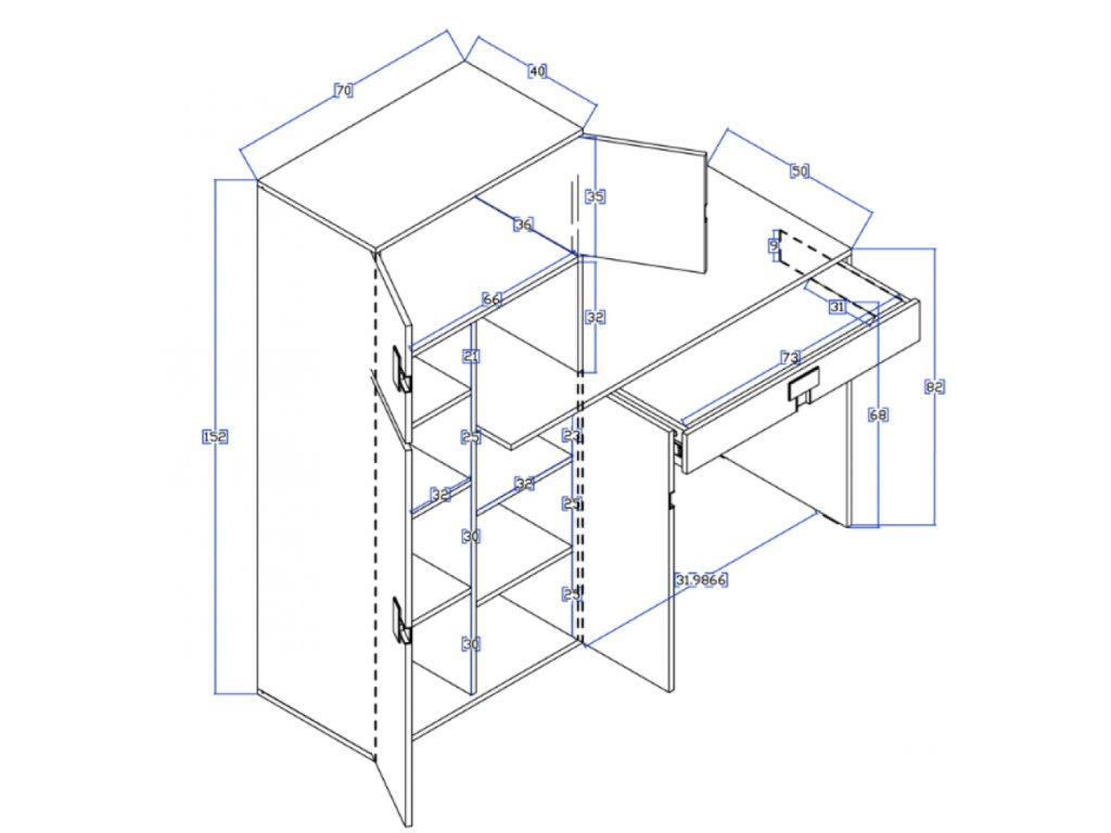 Stůl je vyroben z laminované dřevotřísky o síle 16 mm, která je odolná vůči vlhkosti i poškrábání a snadno se udržuje. Všechny hrany jsou chráněny ABS lištou, která zajišťuje delší životnost a odolnost proti nárazům. Praktické zásuvky s kulovými pojezdy umožňují plný výsuv a plastové úchytky usnadňují každodenní používání.
