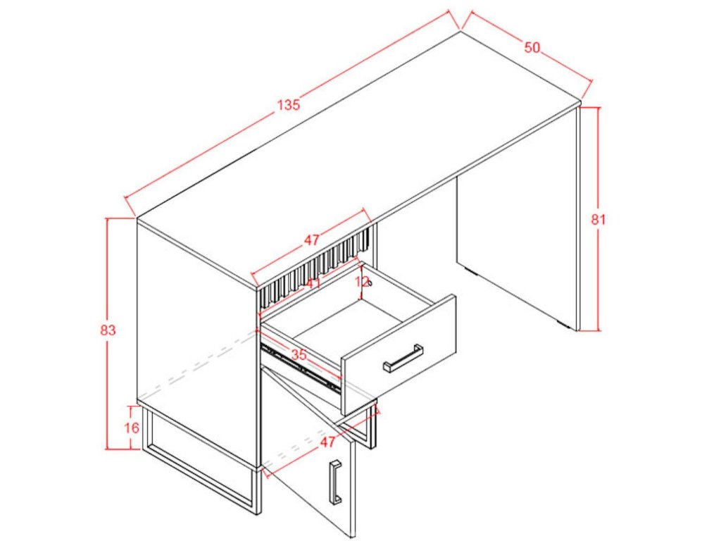 Praktické rozměry – šířka 135 cm, výška 83 cm, hloubka 50 cm, ideální pro práci i studium