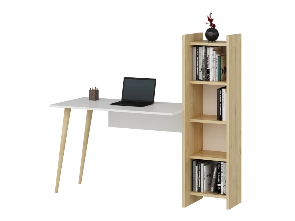 Psací stůl s regálem BILPIN | BÍLÝ / DUB