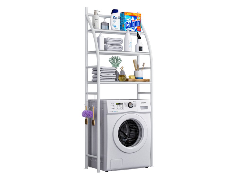 Regál nad pračku ARWEL – bílý kovový regál pro praktické řešení koupelny