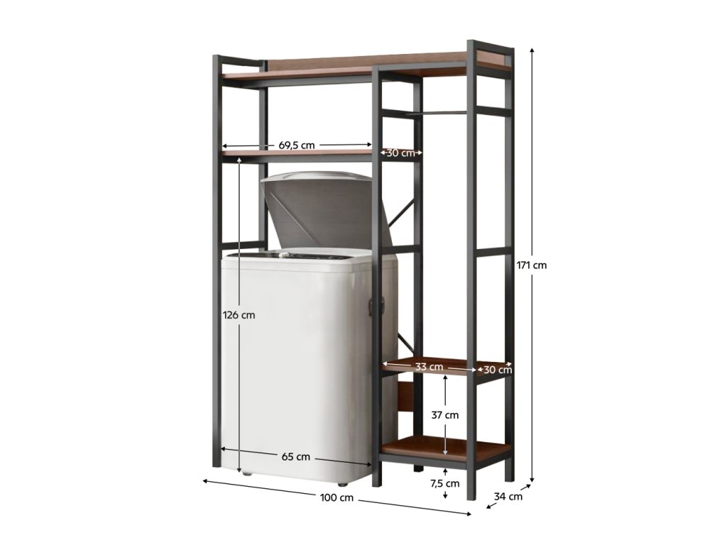 Rozměry (ŠxHxV): 100 × 34 × 171 cm, prostor pro pračku: 65 × 126 cm