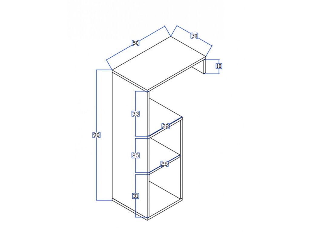 Rozměry (Š × V × H): 50 × 98 × 30 cm
