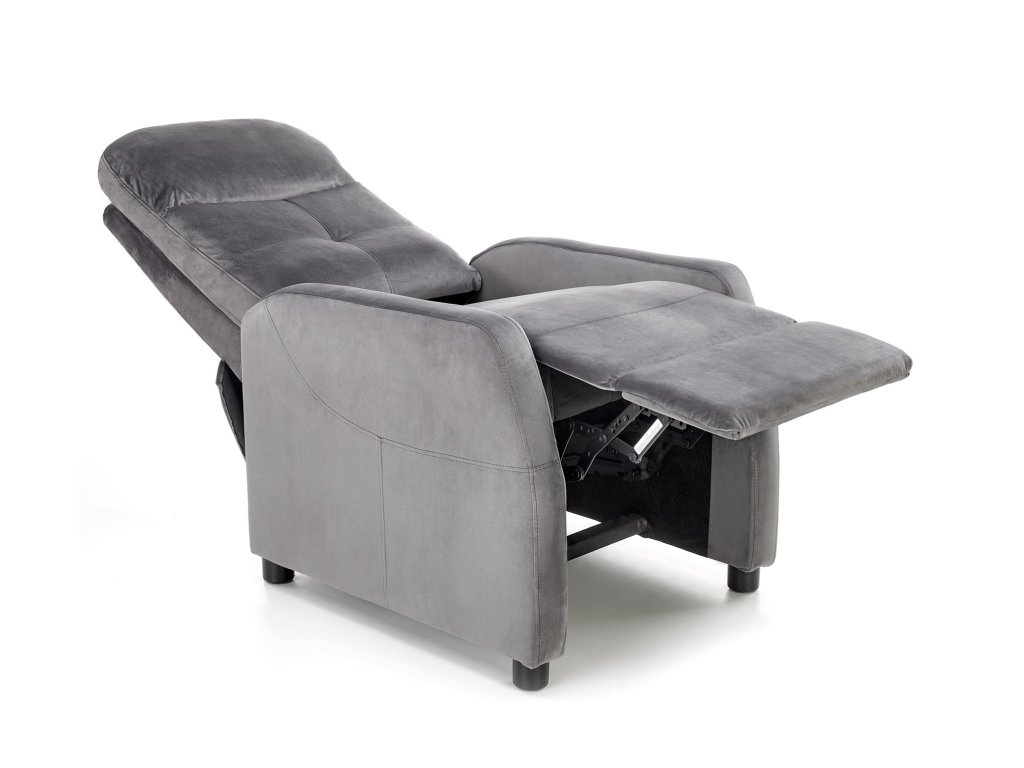 Relaxační polohovací křeslo LUIS II – Šedé sametové pohodlí s nádechem elegance