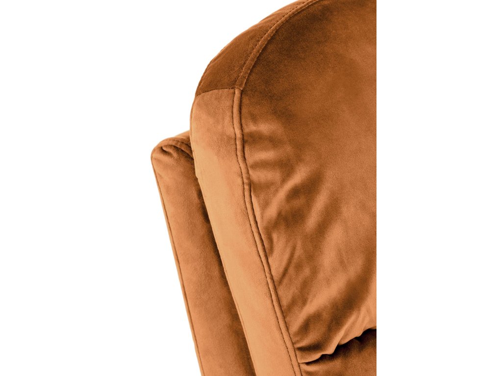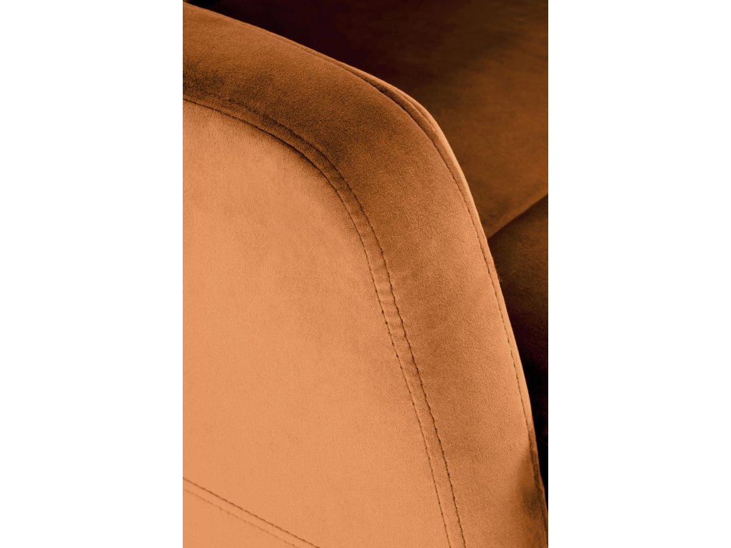 Díky polohovací funkci se křeslo snadno přizpůsobí vašim potřebám – od pohodlného sezení až po téměř vodorovnou polohu pro hluboký odpočinek. Vysoké opěradlo poskytuje stabilní oporu celé páteři a přispívá tak k lepší ergonomii sezení. Celý povrch křesla je potažen hebkou sametovou látkou ve výrazné skořicové barvě, která vnáší do prostoru teplo a útulnost.