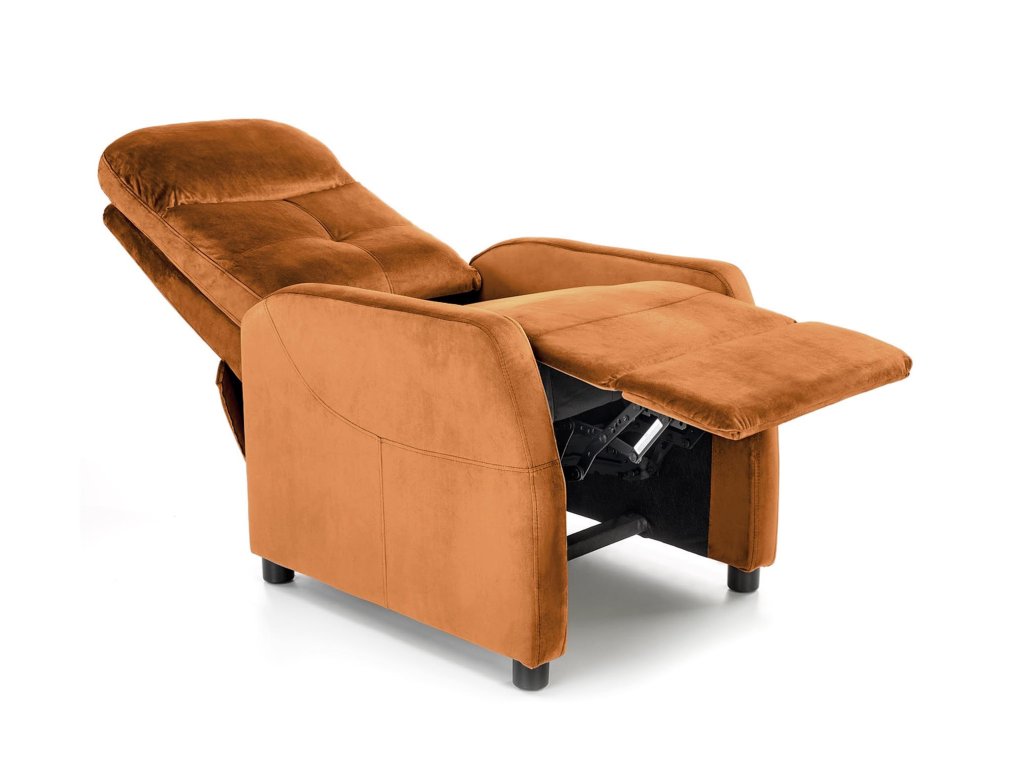Relaxační polohovací křeslo LUIS II – Skořicové sametové pohodlí s nádechem elegance