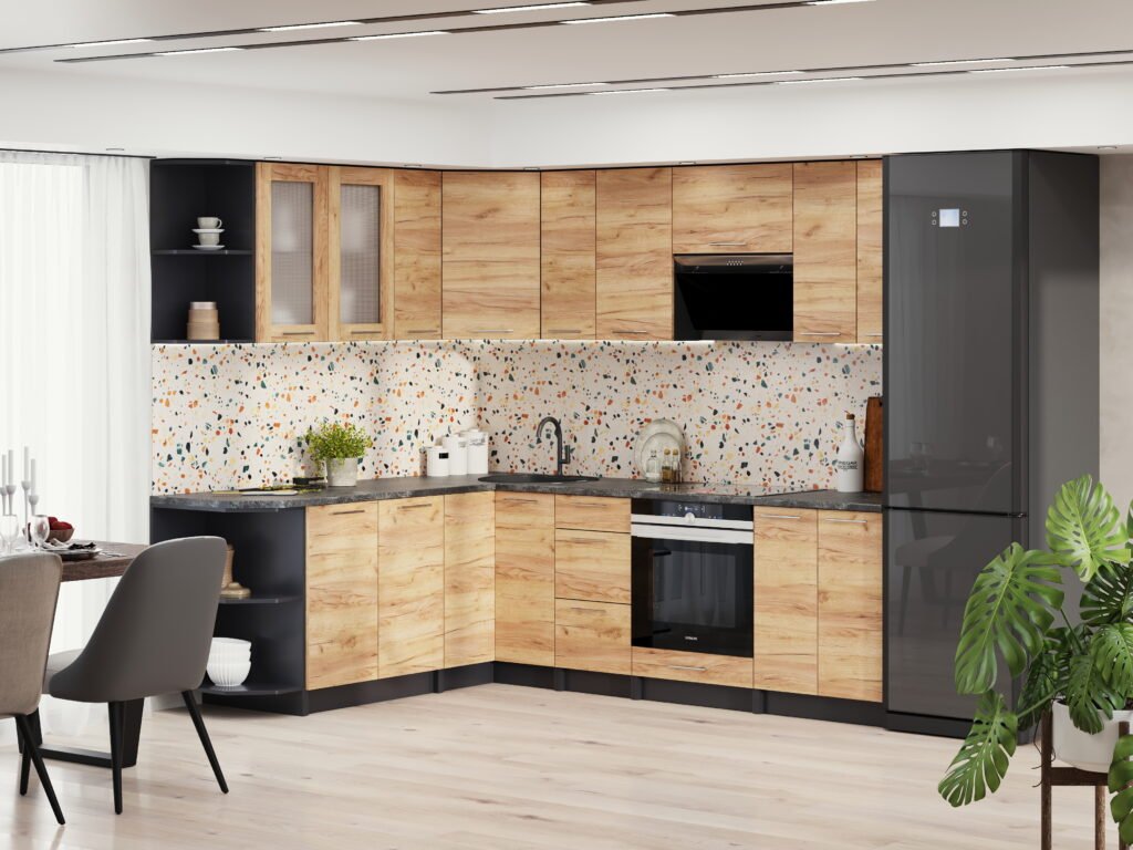 Rohová kuchyňská linka LOLA 200 x 250, dub tacho + antracit