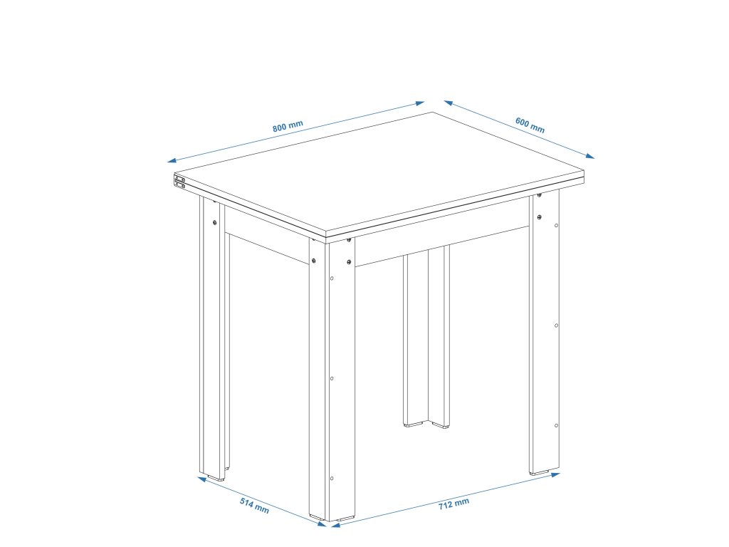 80 × 60 cm, po rozložení 120 × 80 cm, výška 77 cm. Nabízí dostatek místa pro běžné stolování a po rozložení pohodlný prostor i pro více osob.