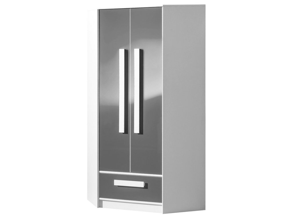 Rohová šatní skříň MALIA 2 do dětského pokoje - bílá / šedá lesk