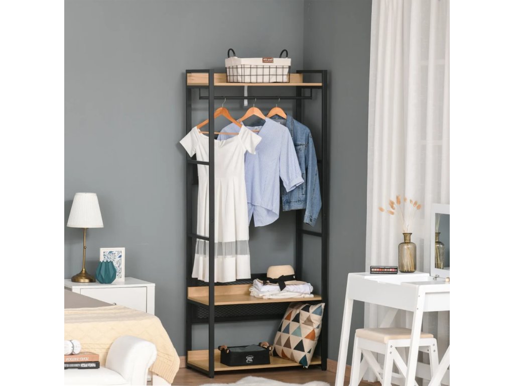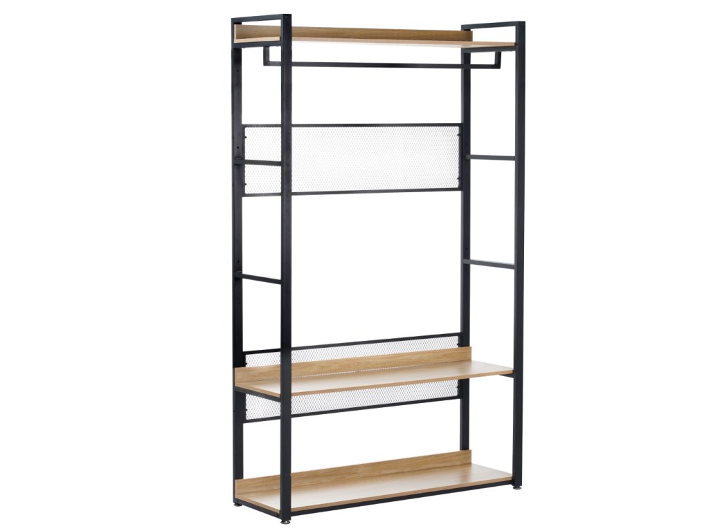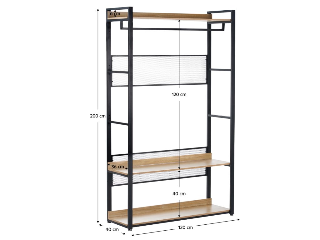 Šatní regál ALISON NEW TYP 2 dub / černý představuje moderní a praktické řešení úložného prostoru do šatny, ložnice, předsíně i kanceláře. Kombinace pevné ocelové konstrukce a foliovaných polic v dekoru dubu působí elegantně, vzdušně a současně nabízí vysokou odolnost pro každodenní využití.