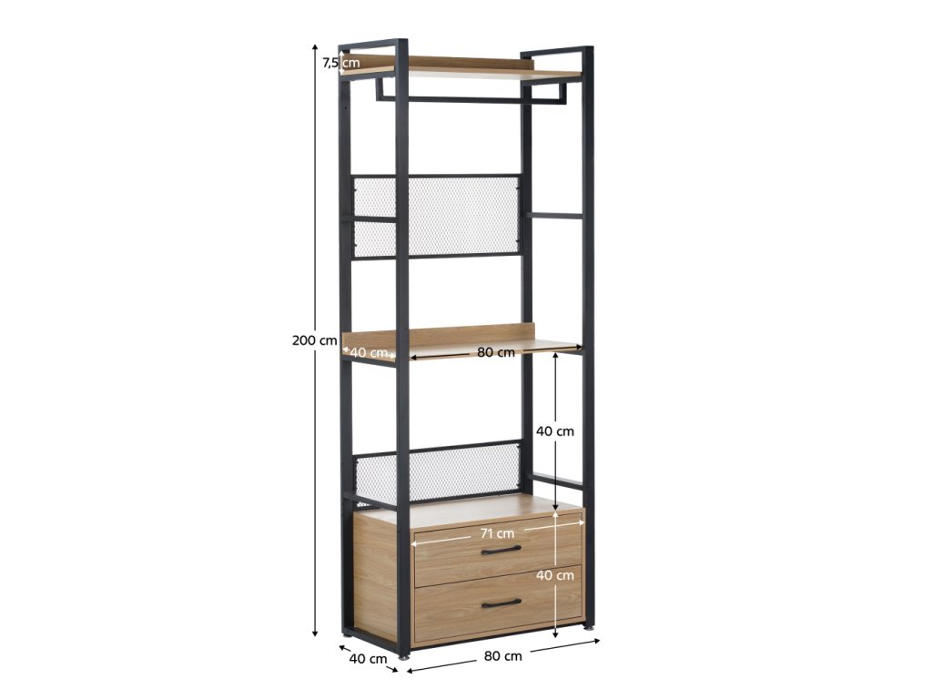 Regál je víceúčelový a hodí se do šatny, ložnice, chodby, pracovny i komerčních prostor. Vyrovnávací nožičky zaručují stabilitu i na nerovných površích. Moderní kombinace dubu a černé barvy podtrhne styl interiéru a regál je dodáván v demontu s jednoduchou montáží.