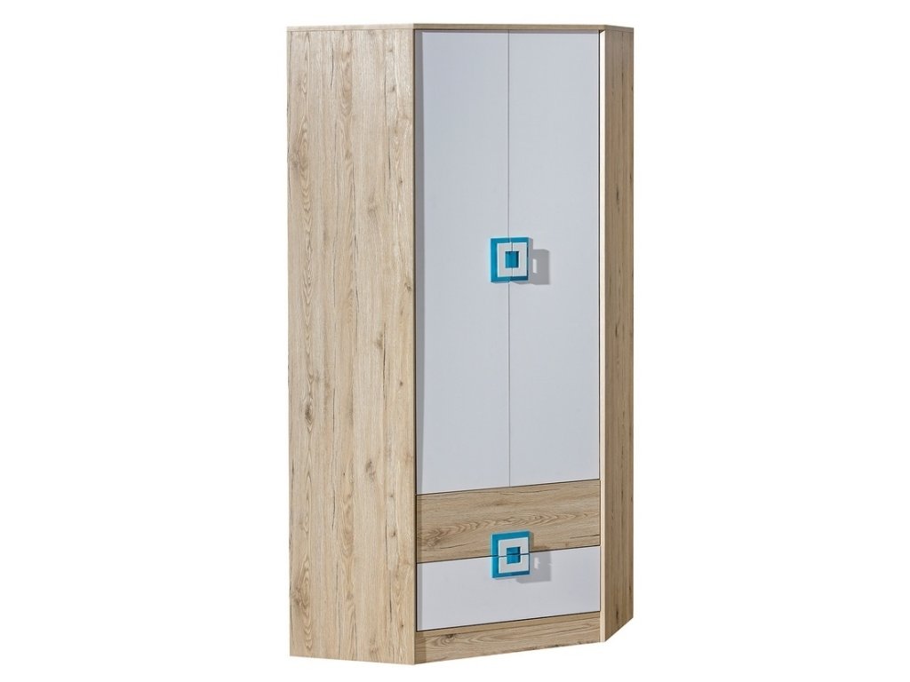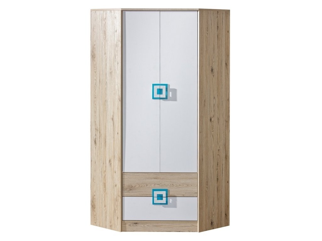Šatní rohová skříň do dětského pokoje FINN 2 | dub jasný / bílá / tyrkys