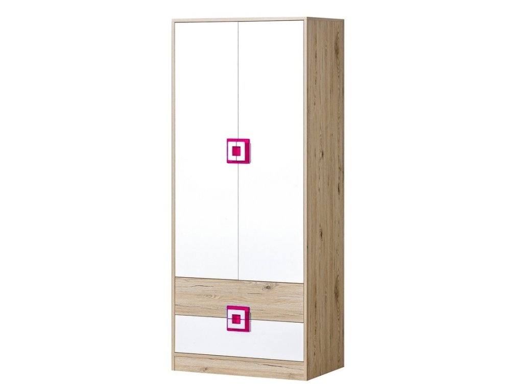 Šatní skříň do dětského pokoje FINN 1 | dub jasný / bílá / růžová