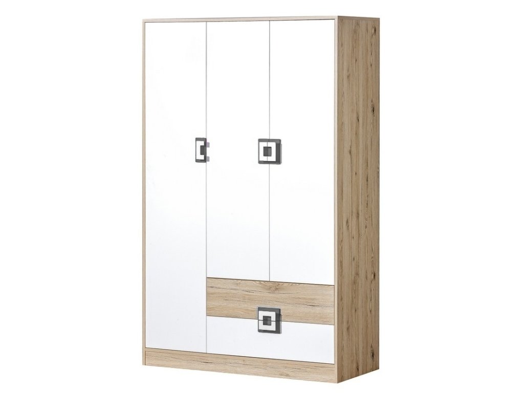 Hledáte moderní a praktickou skříň pro dětský nebo pokoj dospívajícího? Šatní skříň FINN 3 z kolekce Dětský pokoj FINN nabízí nejen elegantní design, ale i maximální funkčnost. Díky kombinaci světlého dubu, bílé a šedé se hodí do každého interiéru a zajímavé úchyty přitáhnou pohled každého dítěte.