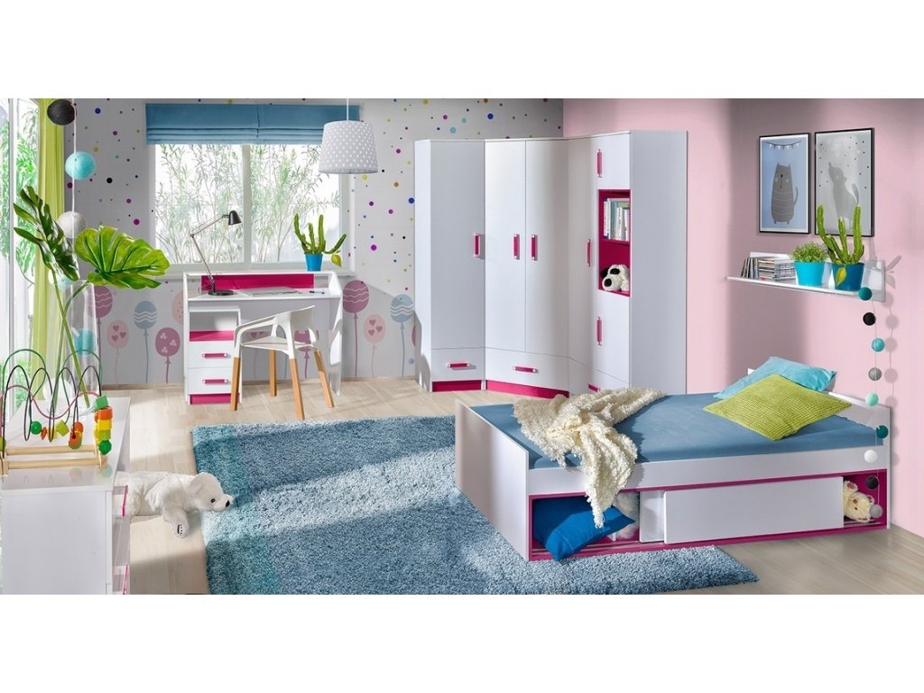 Šatní skříň do dětského pokoje FLUXOR 14 bílá / růžová