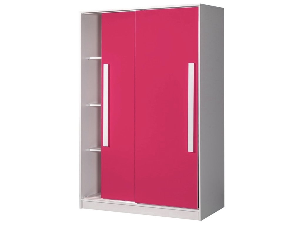 Šatní skříň MALIA 12 do dětského pokoje - bílá / růžová lesk