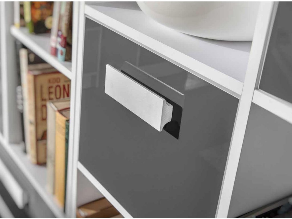 Šatní skříň MALIA 12 do dětského pokoje - bílá / šedá lesk