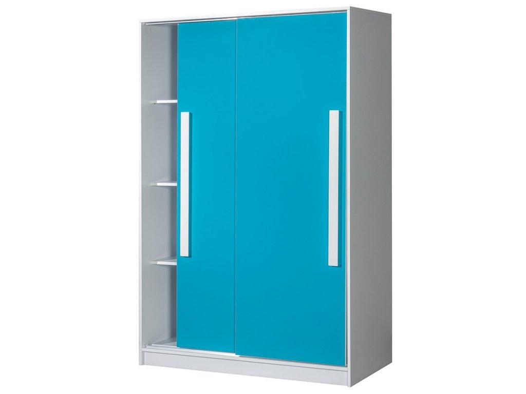 Šatní skříň MALIA 12 do dětského pokoje - bílá / tyrkys lesk
