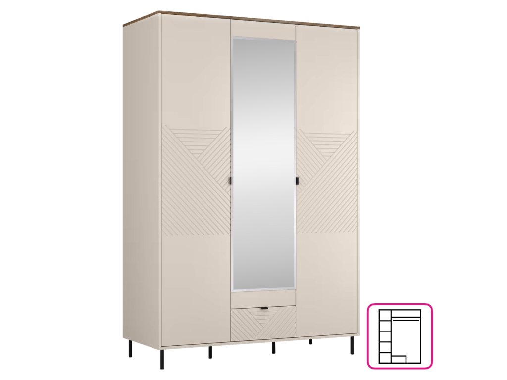 Šatní skříň se zrcadlem SAIDY 3D1S – kašmír / dub castello