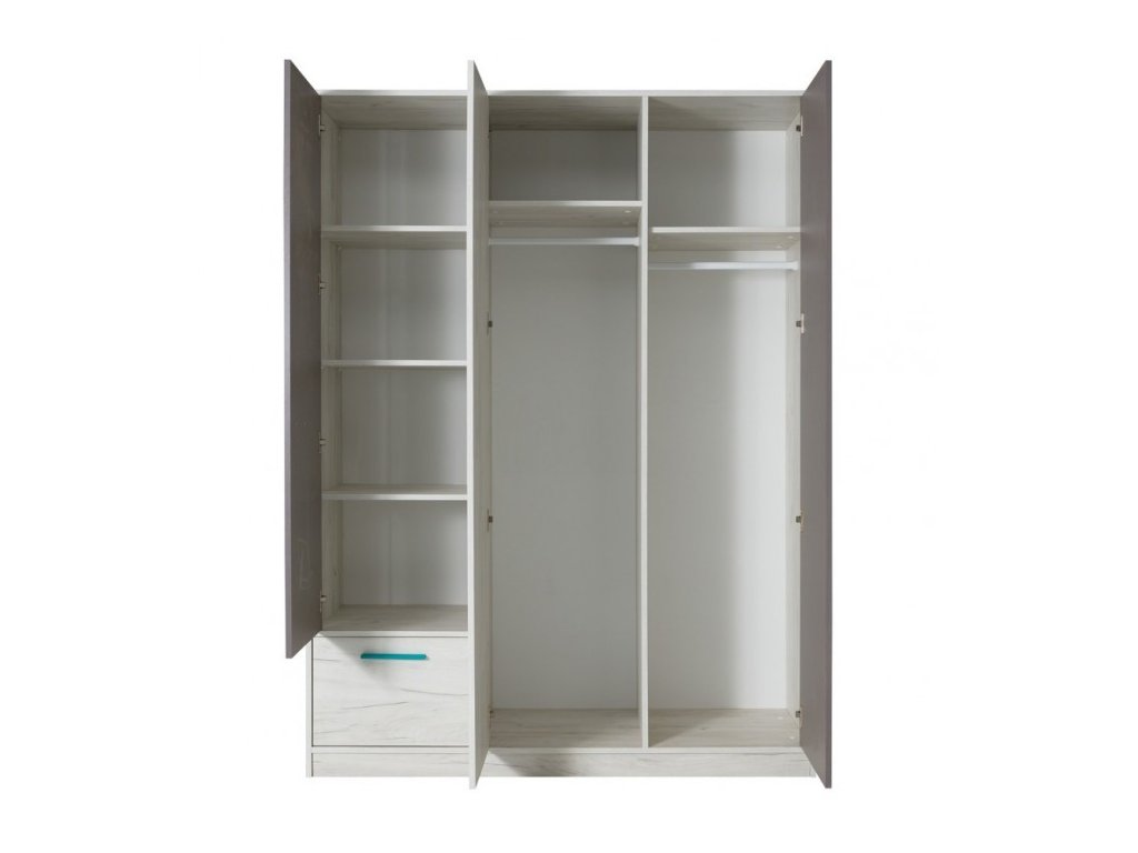 Hledáte moderní a praktické řešení pro uspořádání dětského nebo studentského pokoje? Šatní skříň ZYVEN 03 vás zaujme svým nadčasovým designem a funkčním provedením. Spojení dekoru dub kraft se stylovou šedou barvou působí elegantně a zároveň dokáže opticky prosvětlit i menší či tmavší interiér.